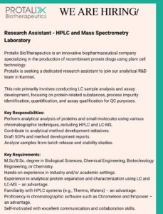 עבודה דינאמית ומלאת עיניין.אז אם את.ה עם:– תואר ראשון ומעלה במדעי החיים או הרפואה– תעודת GCP– יכולת עבודה בצוות ובתנאי לחץ– סדר וארגון– מוטיבציה גבוהה ללמידה ועבודהמזמינים אותך לשלוח קו"ח למייל